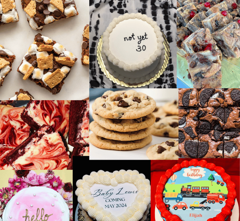 Specializing in custom cakes, brownies, cookies, cupcakes, and more treats.